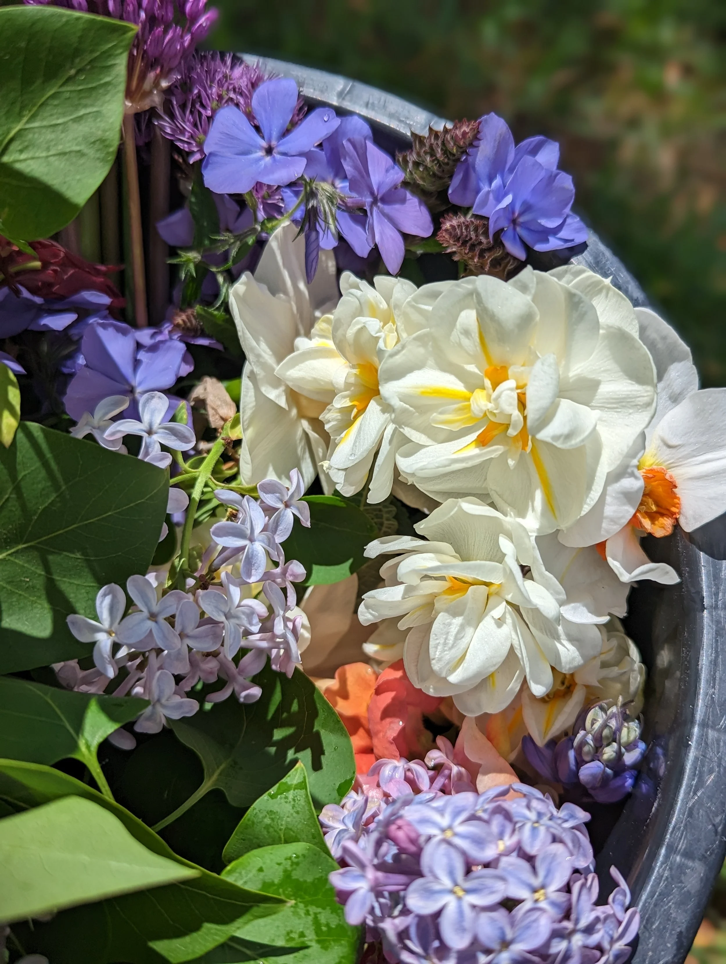 All flowers by the bucket include the cost of the bucket, so no need to worry about bringing your own, cleaning, or returning buckets! Returing buckets is welcomed!