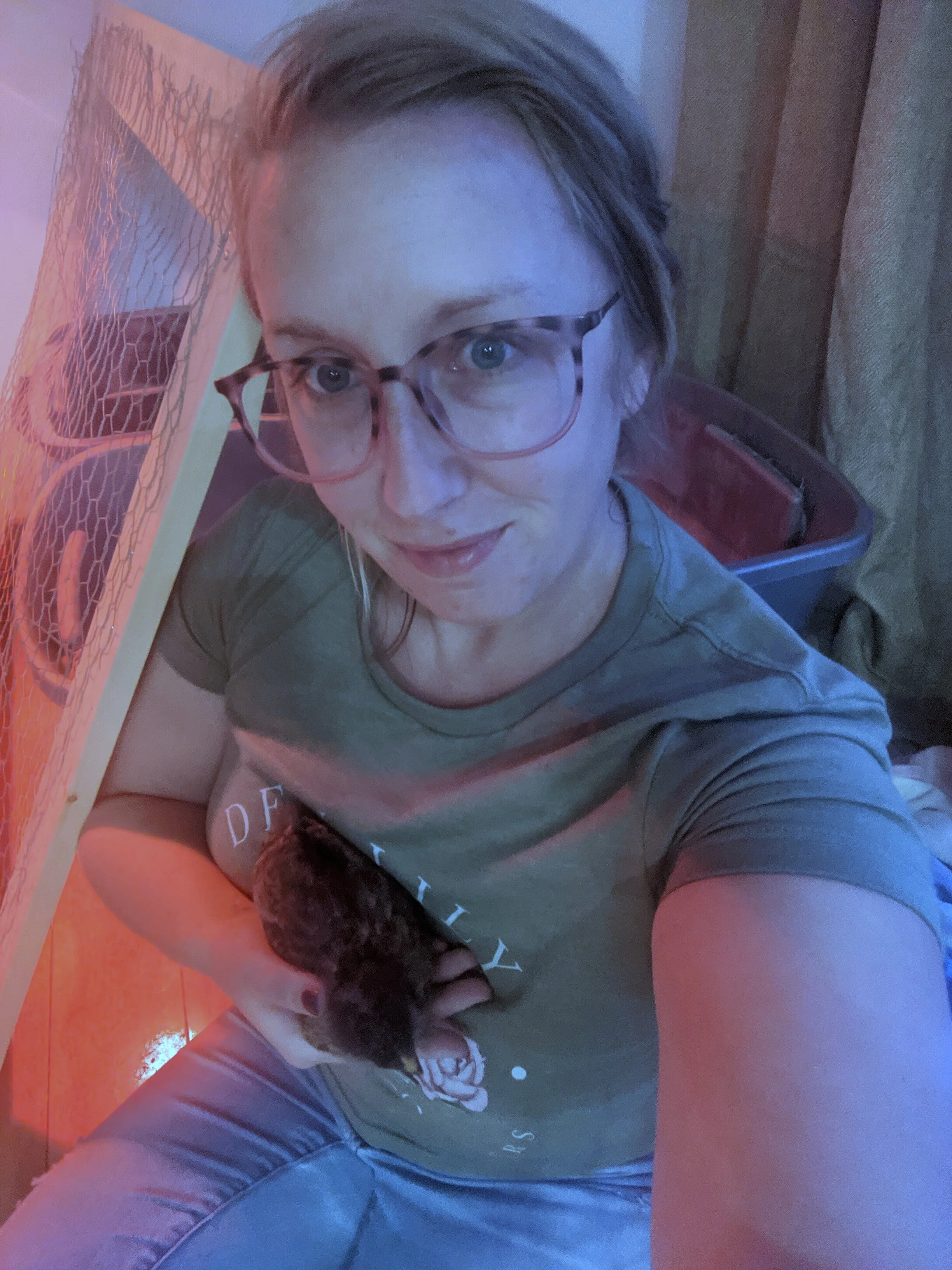 Also, have I mentioned the chicks are in the kitchen? With a red light? Maybe we should have called their coop The Red Light District….