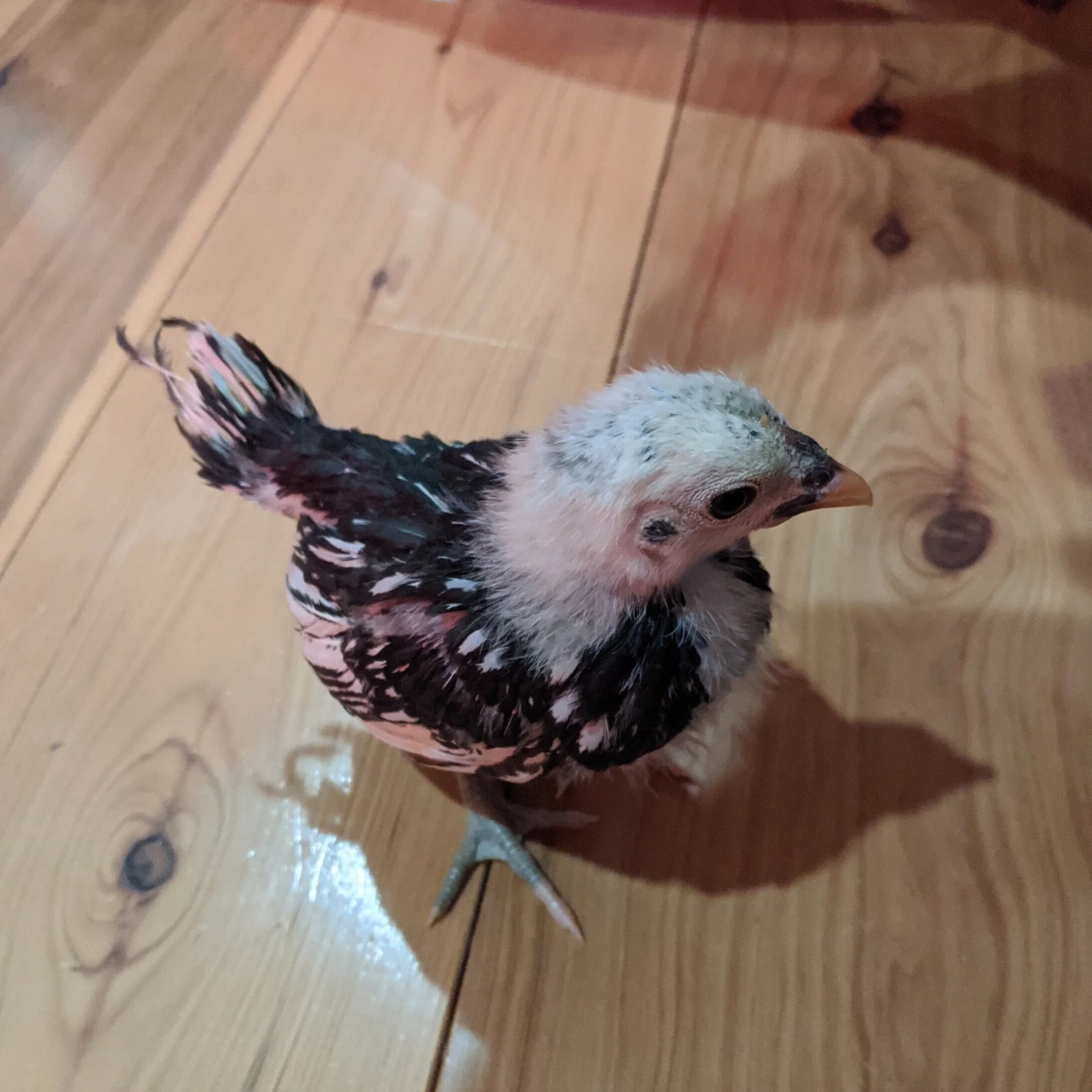 Shark is a little grey/white bantam. It’s named after a YouTuber. #LifeWithAn8YearOld
